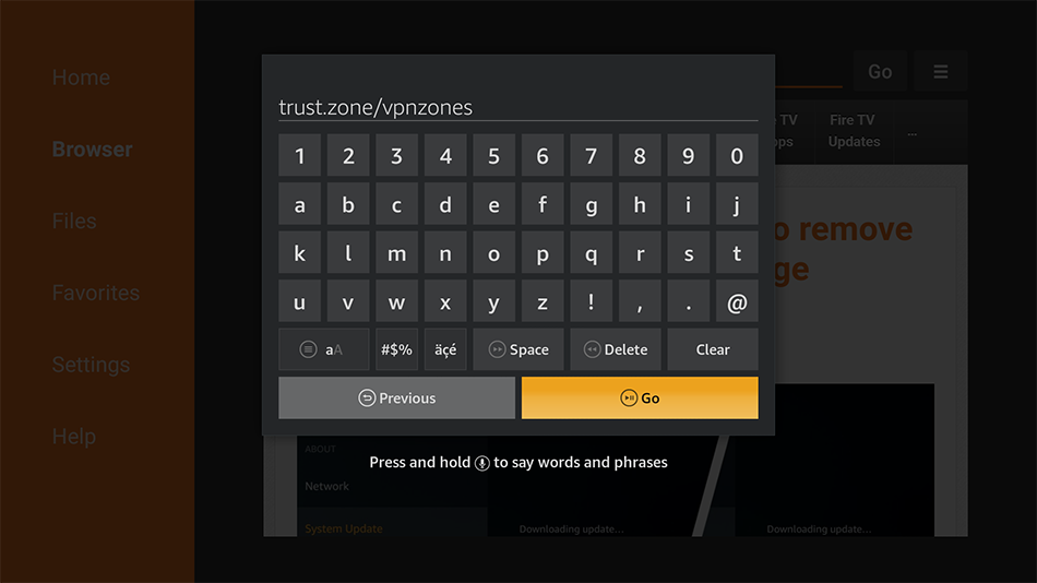 Changez de navigateur dans le volet gauche, tapez l’adresse suivante : https://trust.zone/fr/vpnzones puis appuyez sur Aller