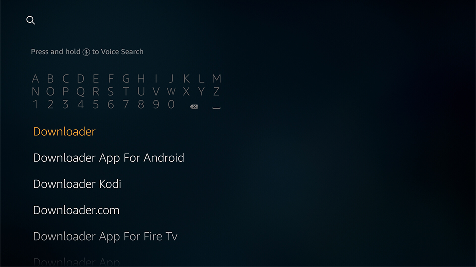 Passez à l’icône de la loupe en appuyant sur la gauche et recherchez l’application Downloader