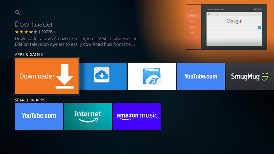 Sélectionnez l’application Downloader