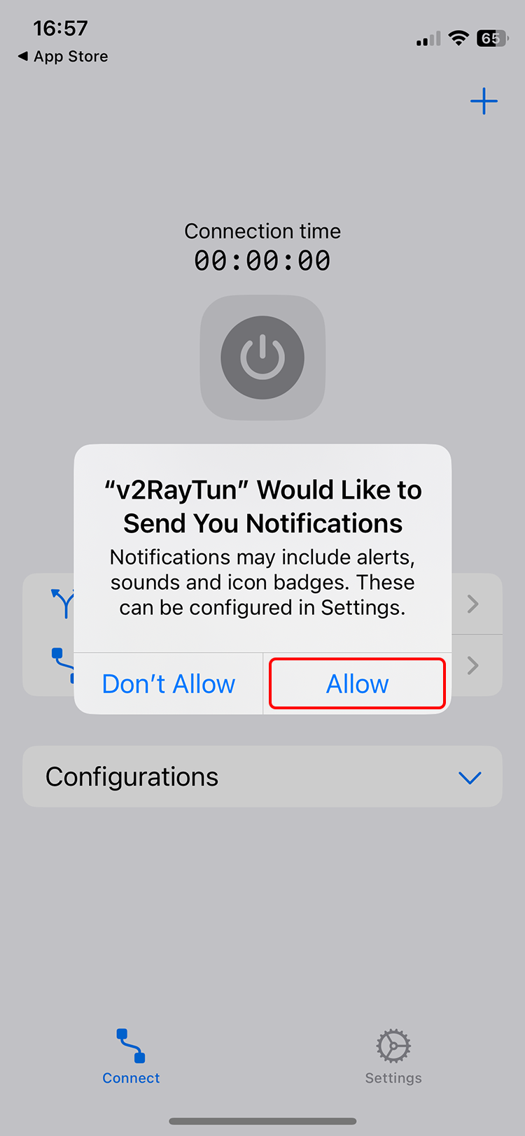 Run the v2RayTun app and Allow v2RayTun to Send You Notifications.