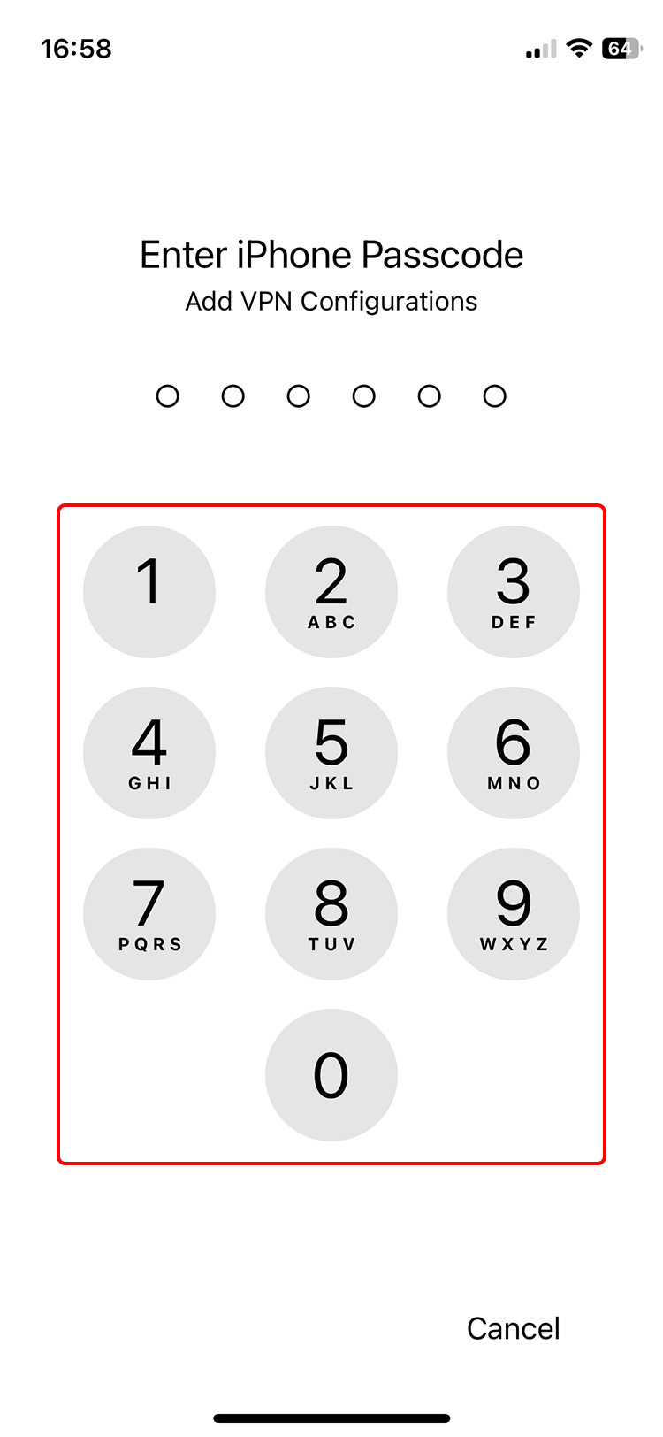 Enter your Passcode to Allow adding the VPN configuration.