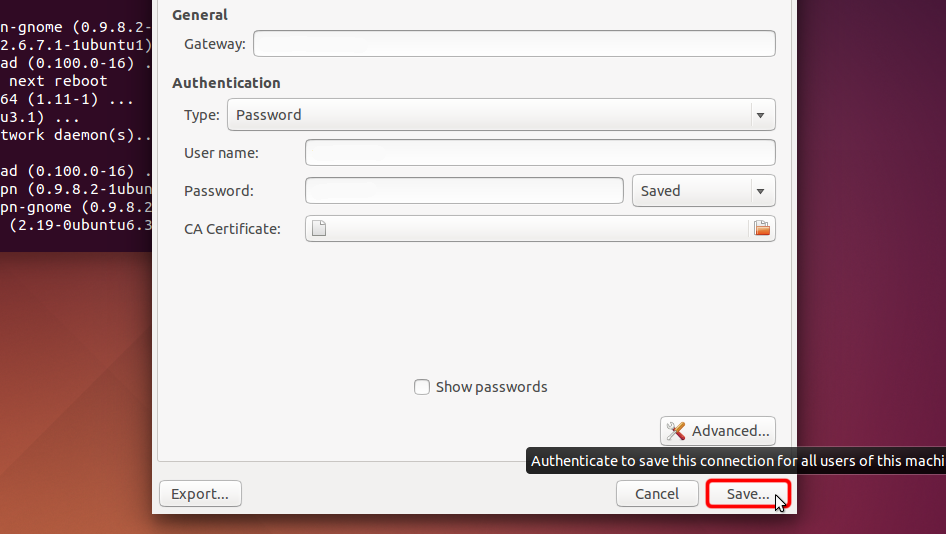 Сlick "Save..." in order to save VPN connection settings.