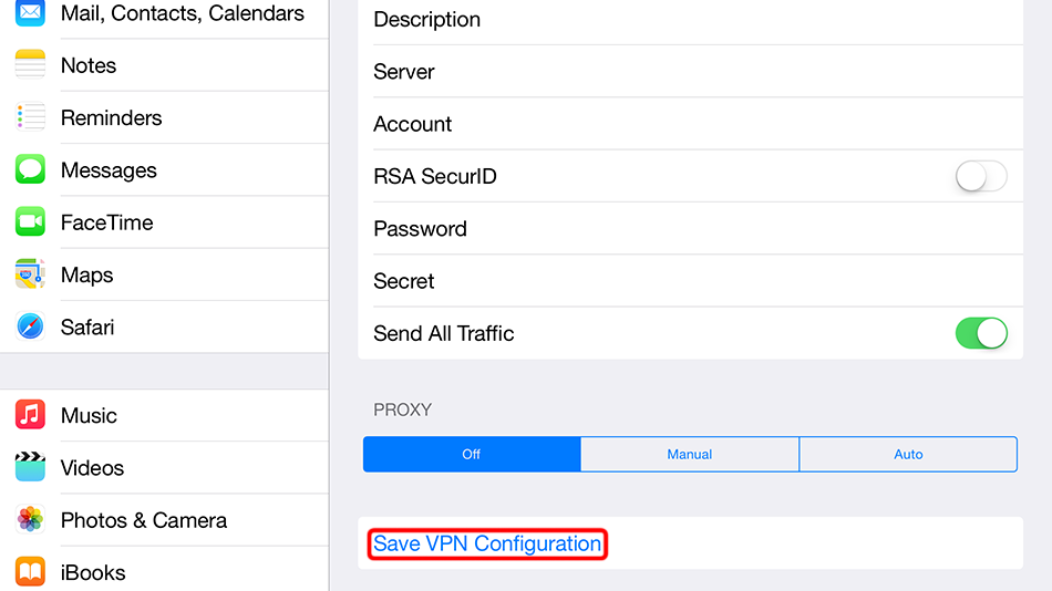 "VPN Yapılandırmasını Kaydet"e dokunun.