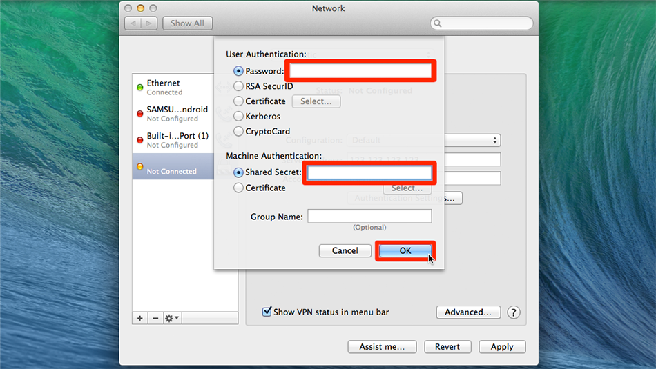 "Sunucu Adresi" Olarak Ayarla: uk.trust.zone. Under "Account Name" enter GİZLİ. Giriş veya görmek için kaydolun.. Afterwards click on "Authentication Settings…".