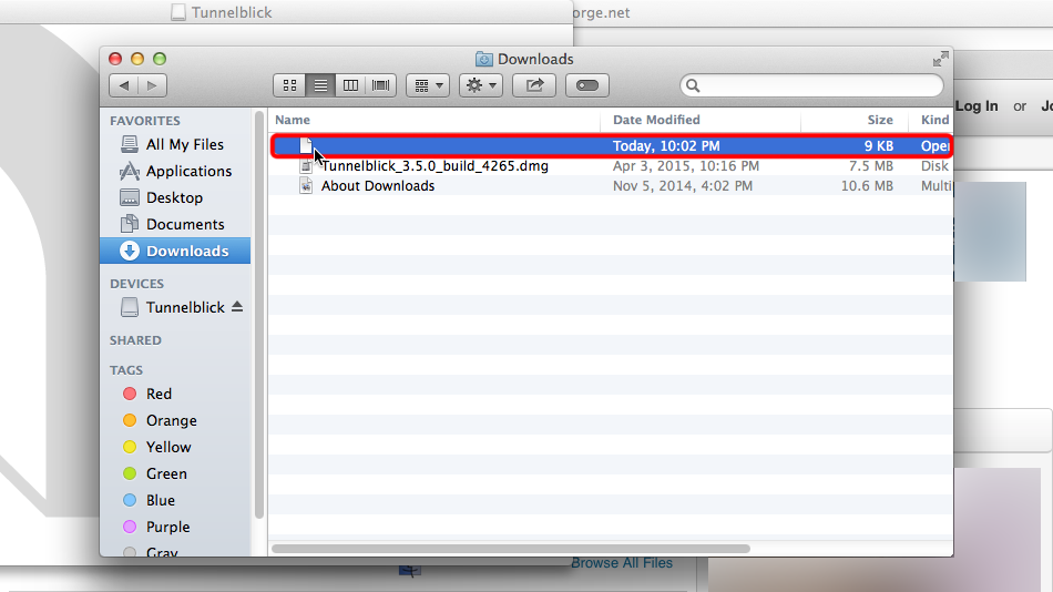 .ovpn dosyasını indirin. Finder'da "İndirilenler"e gidin ve ovpn dosyasına çift tıklayın.